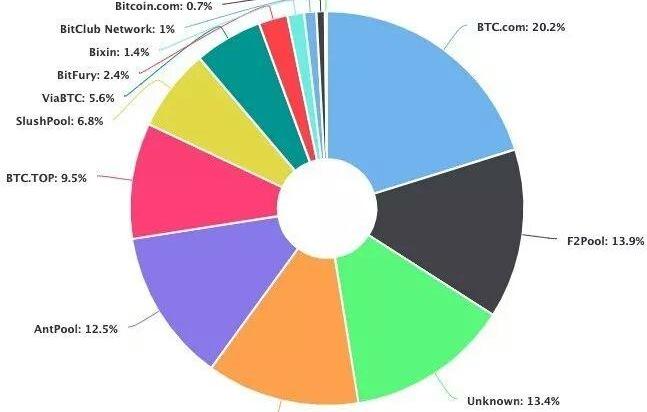 近年来由于专业挖矿硬件的技术进步使得商品硬件过时,比特币挖矿已经变得非常集中。这种中心化是由矿池兴起引起的,矿工在其中分组协作并同意按照其贡献的挖矿哈希算力的比例来分享区块奖励。这些矿池控制着绝大多数比特币网络,据估计,中国矿池控制着大约81%的网络哈希率。其中,较大的中国矿池包括BTC.com、F2Pool和AntPool。