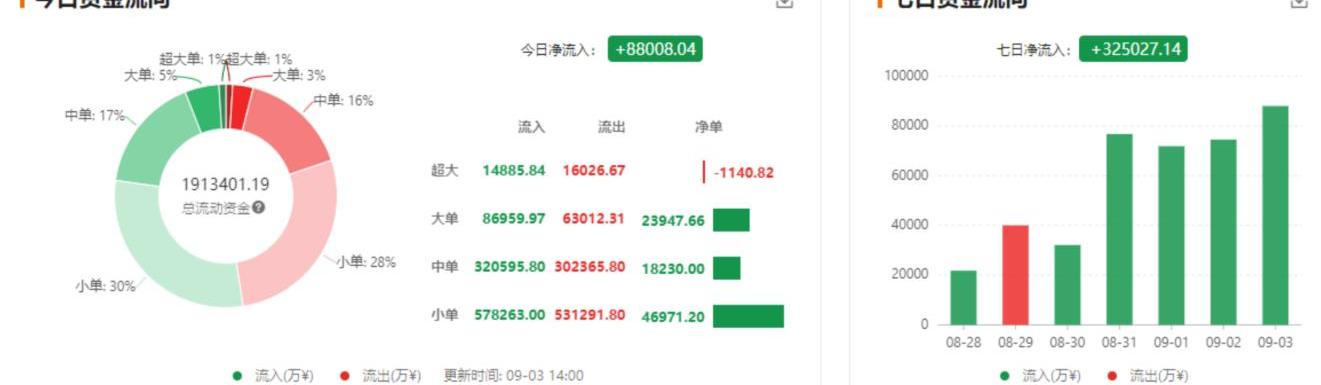 截至14时,ETH的今日资金净流入88008.04万元,较昨日略有减少。其中,超大单净流出1140.82万元,大单净流入23947.66万元,中单净流入18230.00万元,小单净流入46971.20万元。市场以小单建仓居多。