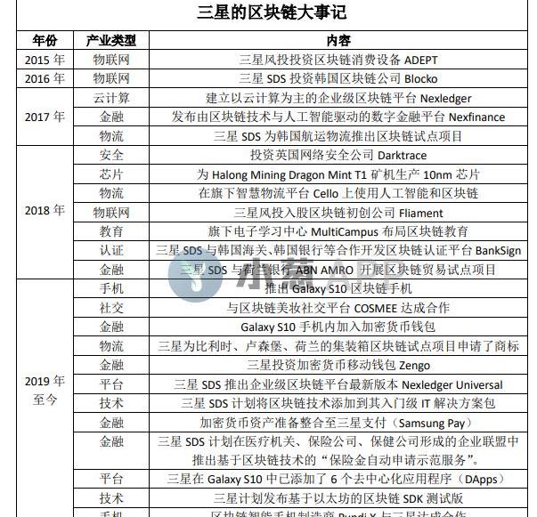 2016年,三星集团的IT子公司三星SDS成为其在区块链布局的主要棋手。三星SDS先后与区块链公司Blocko、韩国海关、韩国银行、荷兰银行ABNAMRO等擦出火花,在物联网、金融、认证等领域产生合作。