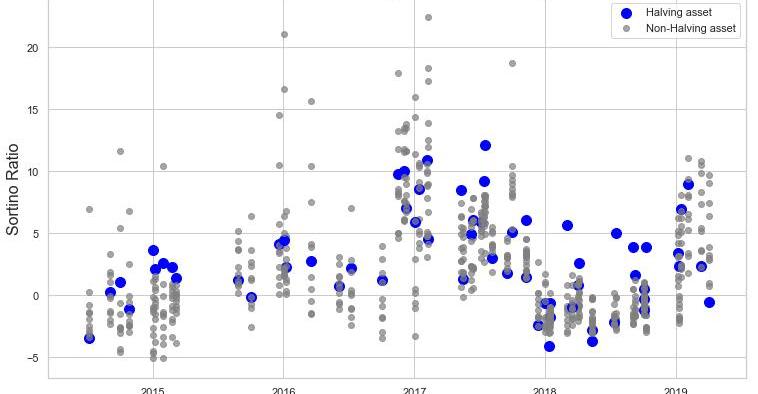 在同一时间框架内资产减半与市场之间的Sortino比率比较。资料来源:StrixLeviathan研究