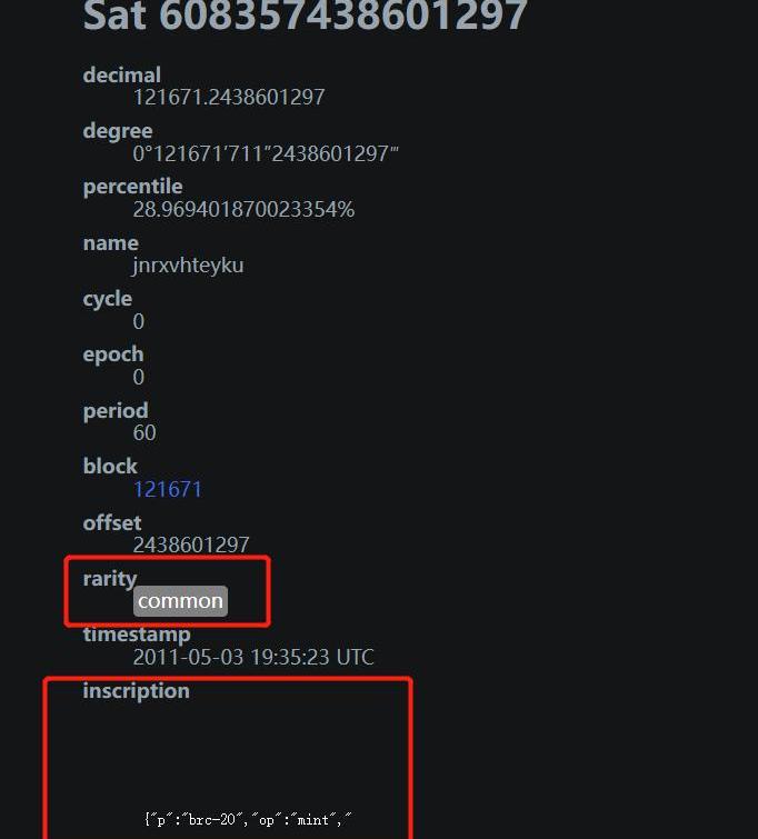 5.你就可以看到你这个铭文所在的聪的稀有度了