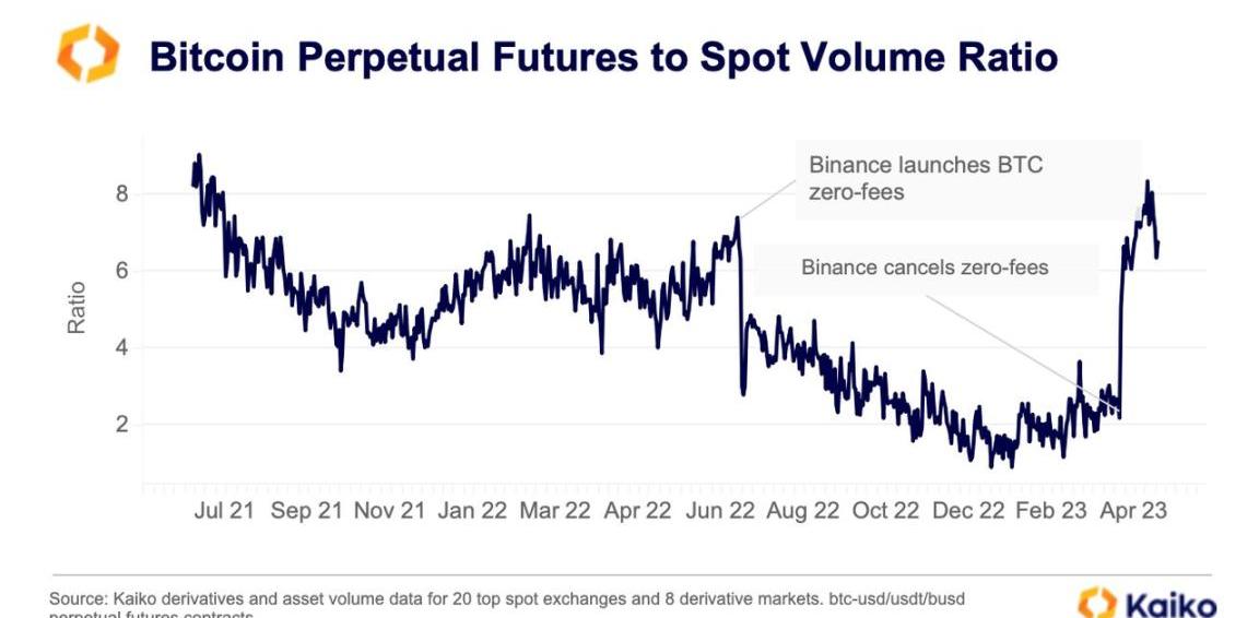 永续合约对价格走势的影响日益增长,目前永续合约与现货的交易量比率已达到近两年来的最高点,导致价格发现开始更多发生在衍生品市场上。那么,当下市场指向哪个方向?
