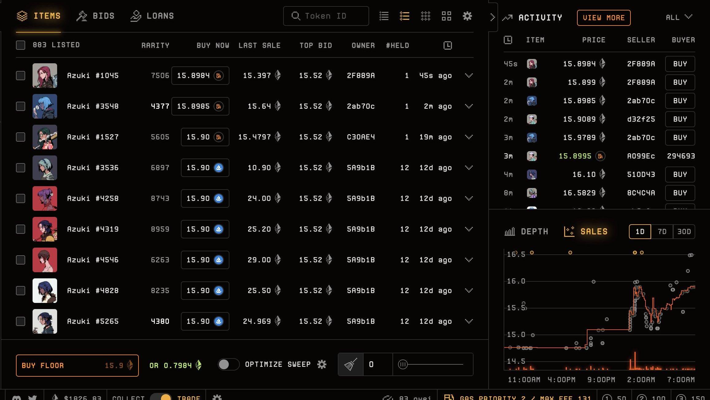 目前Blur只实验了punk,m1lady和Azuki三个NFT。