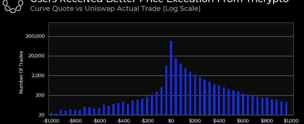 因此,即使在silo和无Gas中进行比较,CurveV2也无法提供比UniswapV3更好的执行,后者的Gas效率更高,并且Uniswap的整体执行价格更好。