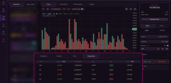 在底部,你可以查看头寸、订单、成交和付款概览。单击“头寸”选项卡可显示账户余额、保证金要求、PnL、杠杆和交易量数据。