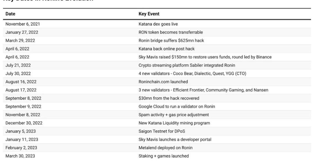 不过我们不能过于急功近利,这种情况并不是一夜之间就能发生的,往往需要时间和努力来达成。从下表中,我们可以了解到Ronin取得今天的地位走了多长时间。