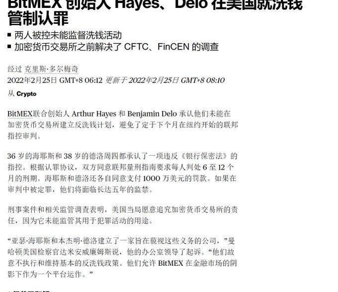 看上去确实挺吓人的,是实际上呢,上一次受到这种待遇的也是币圈的传奇人物,Bitmex的CEO@CryptoHayes,Bitmex可以算的上是币市杠杆合约的缔造者了,也受到了CFTC的打击,目前ArthurHayes已经在纽约法庭对违反美国银行保密法表示认罪,美国司法部将BitMEX定性为平台。并要求罚款和监禁。