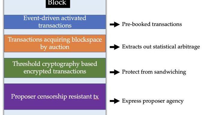 这种设计允许DApp通过在DEX之间预先预订套利来内化MEV,例如让统计学家套利参与区块构建,让用户受到保护,让验证者表达审查阻力。