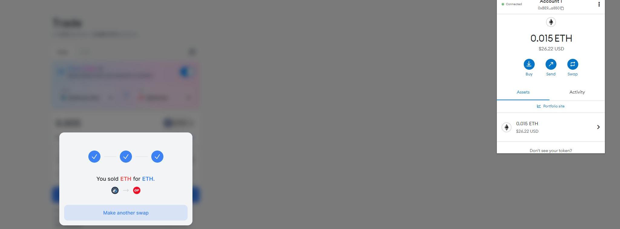 跨0.005e到op链。大概1-2分钟到账。gas约0.5刀左右