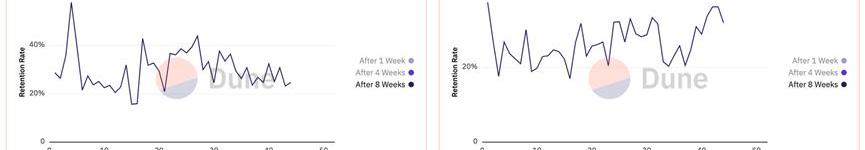 Arbitrum与Op相当,留存率均在30%左右波动,并未有明显差异。