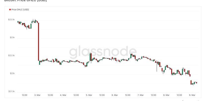 本周BTC震荡下跌。行情由于美国加息预期面临新的不确定性,但长期周线反弹趋势仍未破坏。接下来的3月14日CPI和22日加息将是市场关注重点,无论利空靴子落地,还是预期消化利空不跌,20000左右的BTC都是长期良好的建仓机会。