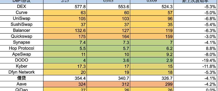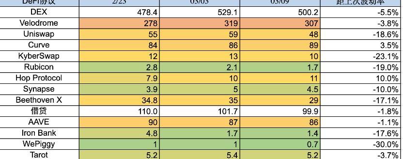 本周TVL下降幅度较大,受到各方面因素的影响,下跌4.7b,市场抄底情绪浓郁。ethereum及layer2公链基本都收到市场影响开始下跌,在layer2公链中,arbitrum、optimism、avalanche跌幅均超过10%。另外KAVA7日内上涨35%。