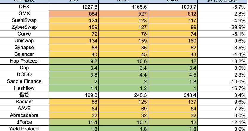 当前链上转账费用约为0.83美元,Uniswap交易费用约为7.59美元,Opensea的交易费用约为2.95美元,基本与上周同期持平,市场活性还未逆转,处于底部区间。blur依然是gas消耗大户,维持上周水平保持在第一位。