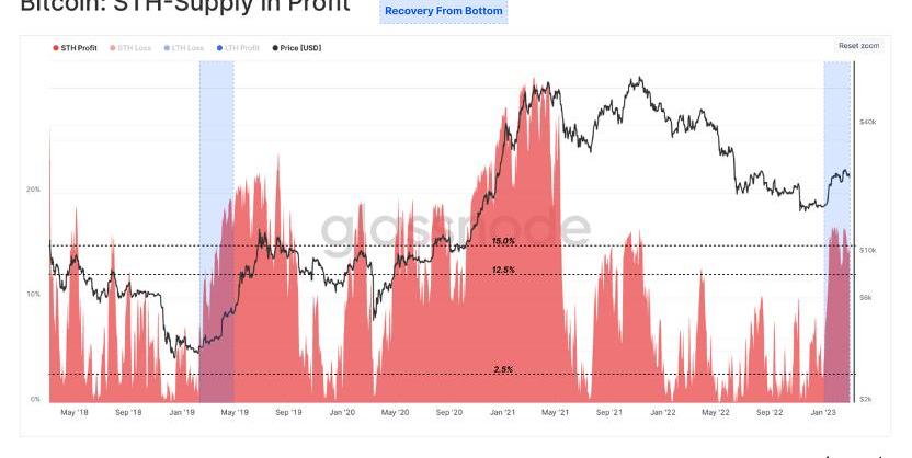 BTC持有者结构类似上个熊市末期水平。近期市场反弹后,持有BTC半年内的投资者盈利比例,从2.5%的熊市水平快速上升至15%,与2018-2019年熊市低点的复苏模式非常类似。市场结构仍处于熊市到牛市的过渡阶段。
