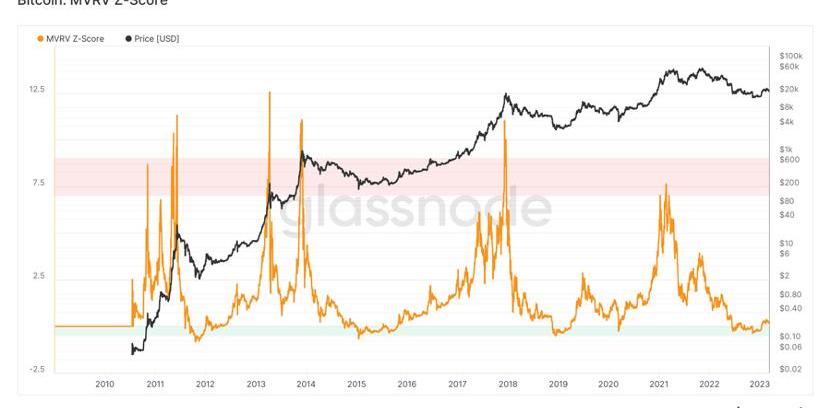 长期趋势指标MVRV-ZScore以市场总成本作为依据,反映市场总体盈利状态。当指标大于6时,是顶部区间;当指标小于2时,是底部区间。MVRV跌破关键水平1,持有者总体上处于亏损状态。当前指标为0.14,脱离了绿色抄底区间。