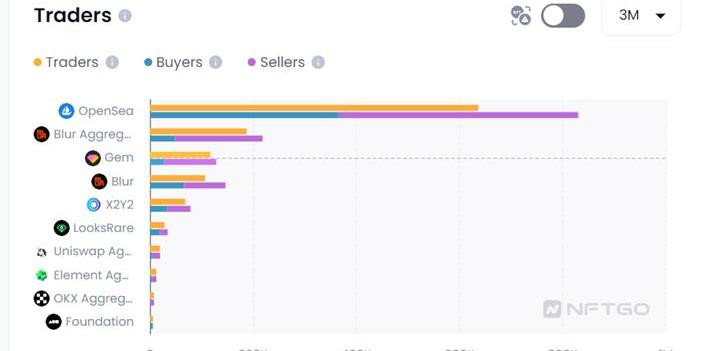 Opensea和Blur在版税问题上采取截然不同的措施,在业务上高度重叠,竞争愈发白热化。近期Blur虽然说有不少时间的日买卖量都超过Opensea,但用户数量和Opensea还有比较大的差距,同样取近三个月的数据,Opensea的用户数636k,Blur的用户数只有187k。