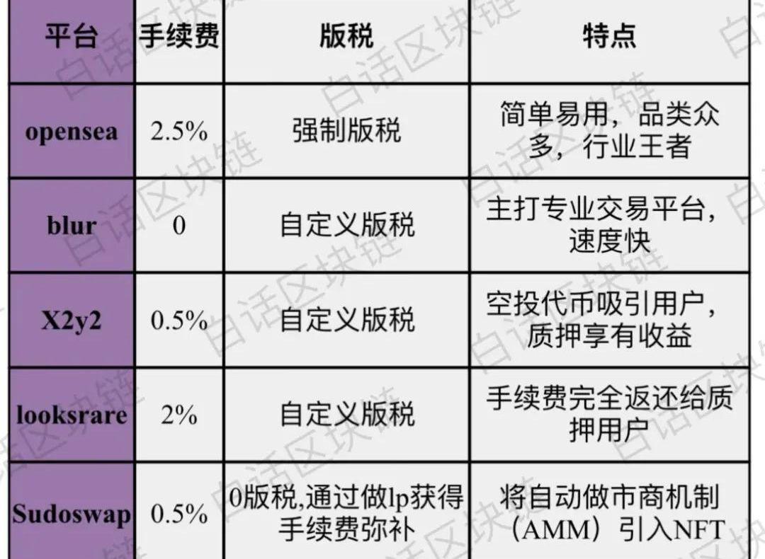自定义版税,0手续费版税和手续费对于用户来说是两个重要的成本支出,尤其在熊市赚钱效应不佳的情况下,用户更加不愿意承受。因此其他各大新兴的交易平台也在这方面下了不少功夫。