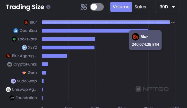 NFTGo的数据显示,近一个月以来它的交易规模已经达到了240kETH,仅仅上线3个月,就超过了Opensea这些年的积累。