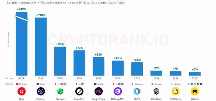 尽管OpenSea在2022年4月增加了对Solana的支持,MagicEden在Solana上交易量无疑是持续处于领先地位。