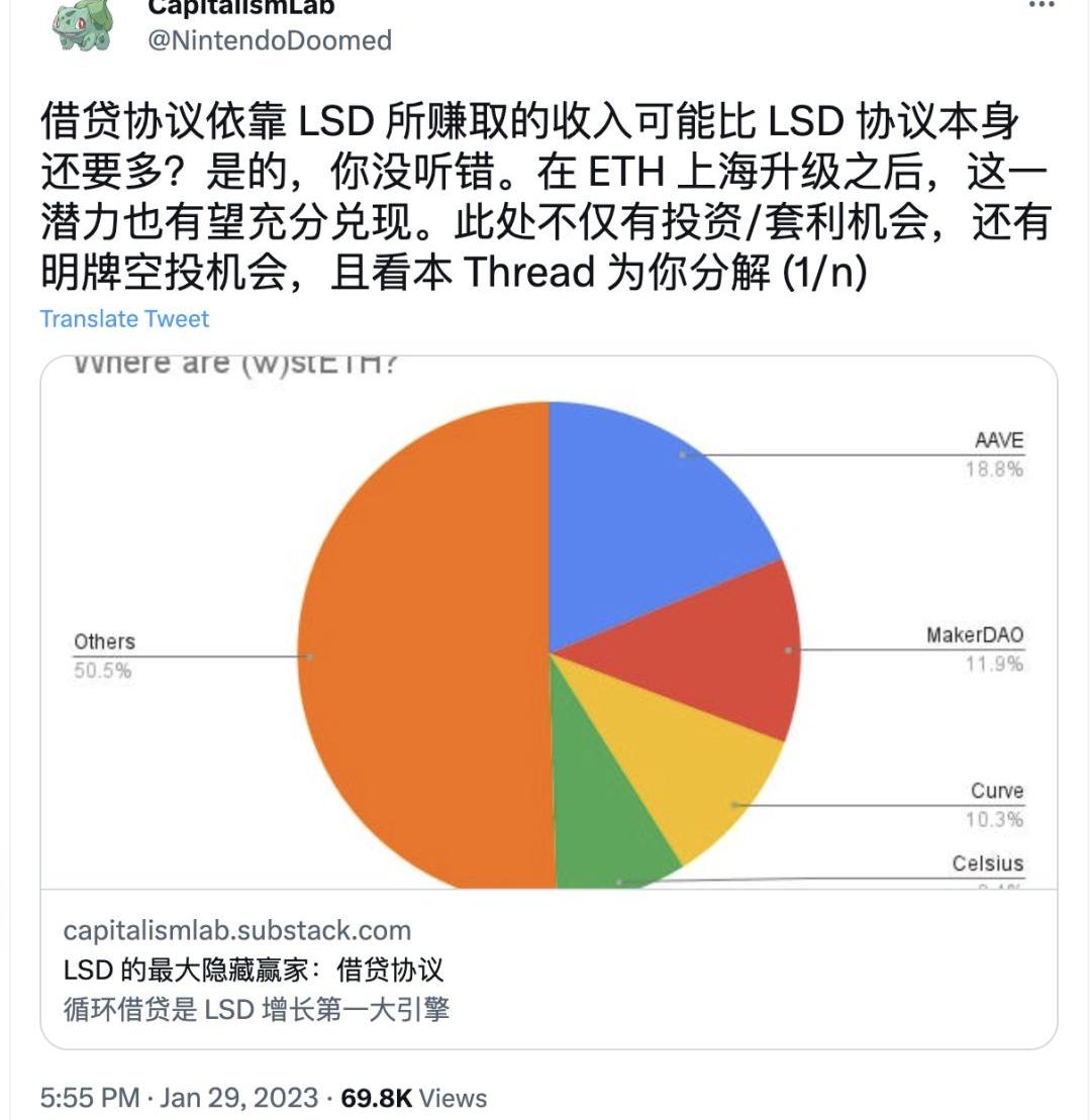 以太坊质押解锁或为借贷协议带来增量:通过借贷协议抵押LSD质押凭证参与借贷活动,并非新鲜事,不少LSD协议通过杠杆质押获得规模增长。随着上海升级的到来,以太坊质押提取将使得LSD市场更加繁荣,杠杆质押的需求进一步增加。相关的自动化策略产品,杠杆管理工具也会得到进一步的发展,相关潜力项目有DeFiSaver、cian.app等:
