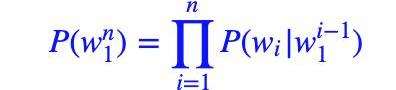 P(S)=P(w1,w2,..wn)=P(w1)?P(w2|w1)?P(w3|w1,w2)?…?P(wn|w1,w2,..wn?1)