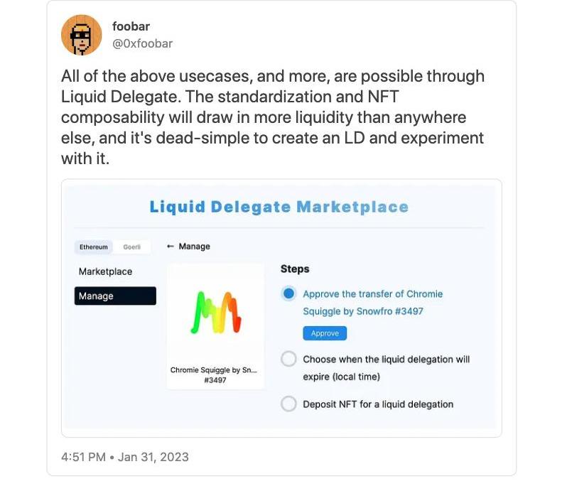 ●?delegate.cash背后的团队刚刚推出了LiquidDelegate,这是一个将NFT委托权转化为可交易NFT的系统。