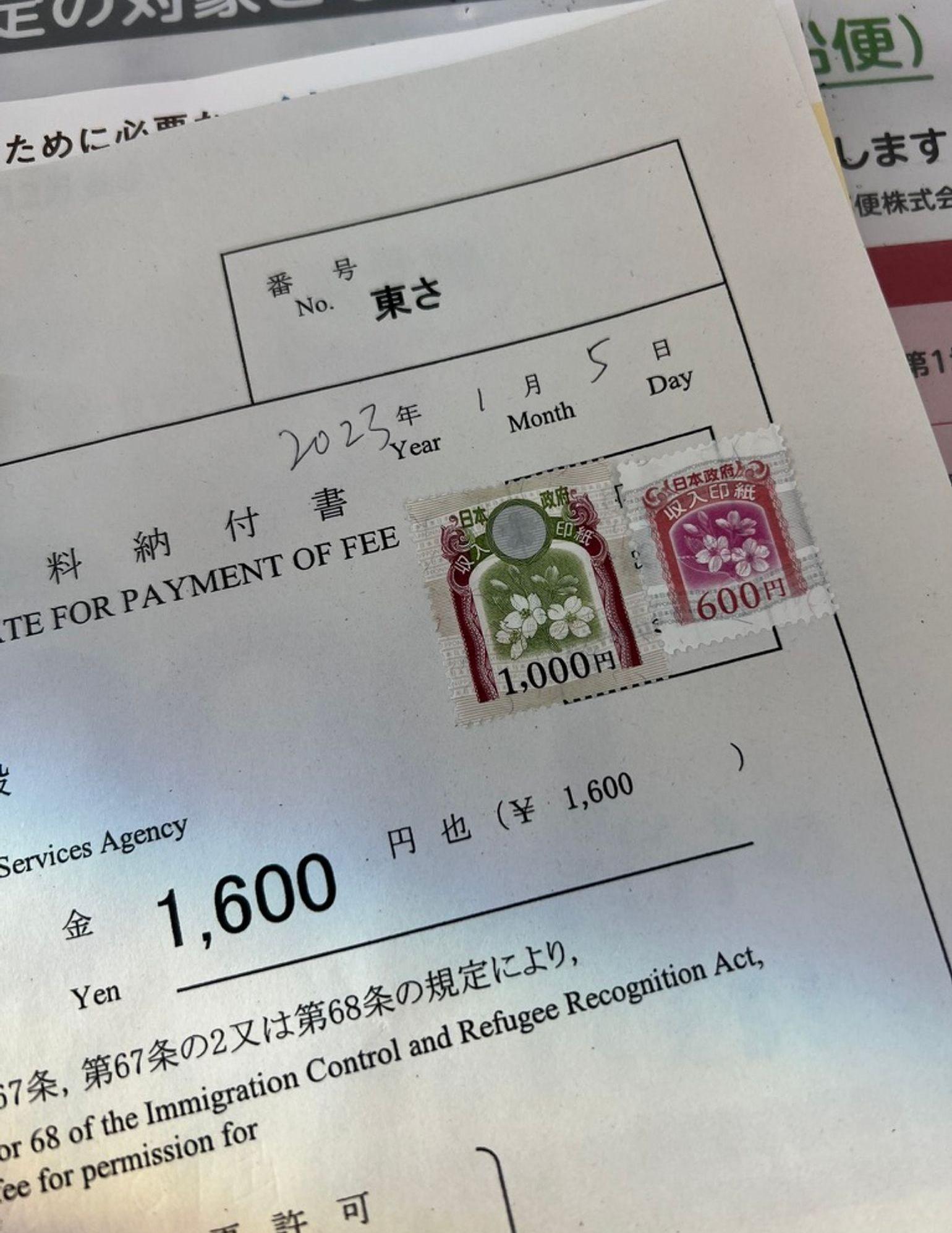 中间一个小插曲就是缴费,我以为直接付钱就好了,但是其实是要去邮局去买「印纸」贴上才可以,办理的地方不收现金的。