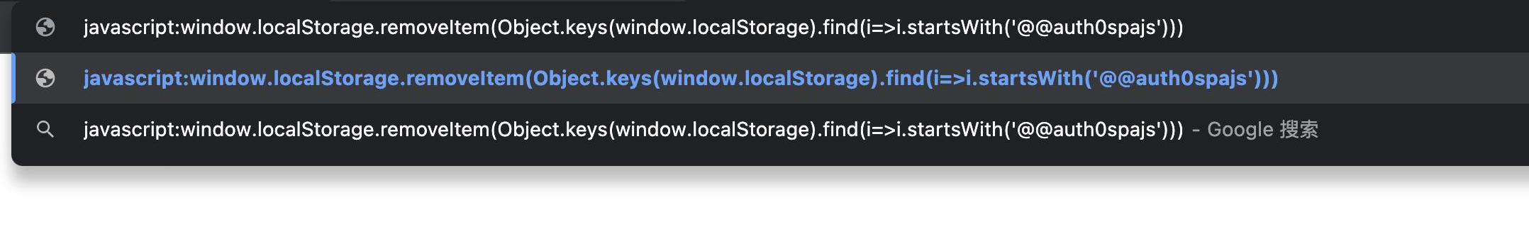 window.localStorage.removeItem(Object.keys(window.localStorage).find(i=>i.startsWith('@@auth0spajs')))