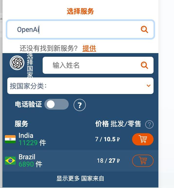 这里我们选择印度,然后到我们的接码网站上去。在左侧搜索OpenAi,然后点击印度。