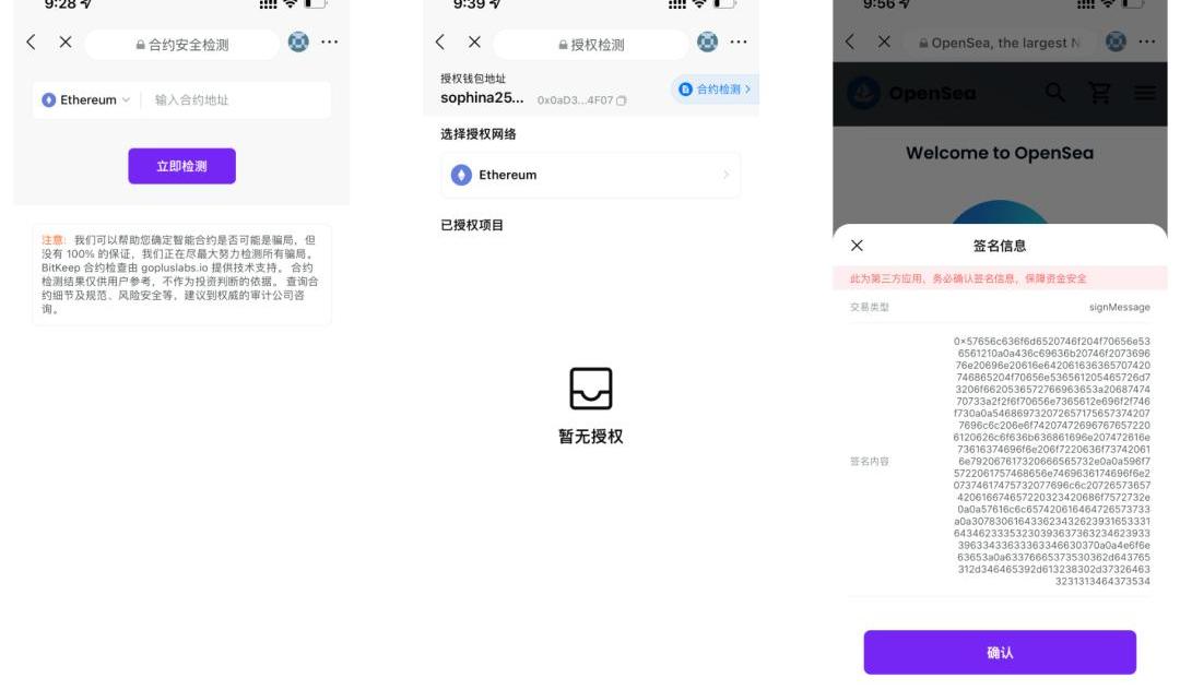 有效解决了单点失效问题。MPC-TSS门签方案,通过将私钥分片化处理,有效避免了因整个私钥丢失的系统风险。网站授权/签名提醒:支持查看代币授权、NFT授权、网站授权,可以随时取消授权