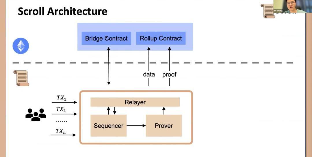 近日,Scroll的联合创始人张烨受邀参加了斯坦佛的区块链研讨会,分享了Scroll的架构设计和挑战。在演讲的前半部分,介绍了Scroll的整体架构,并重点介绍其一些特殊的设计选择。