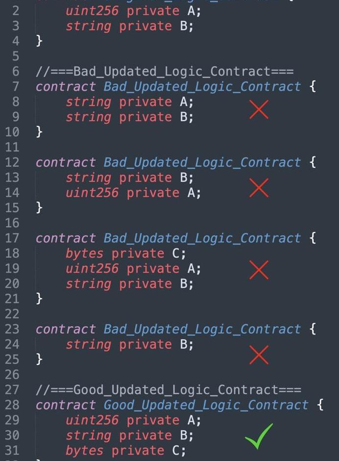 ②维护逻辑合约的变量声明顺序和类型