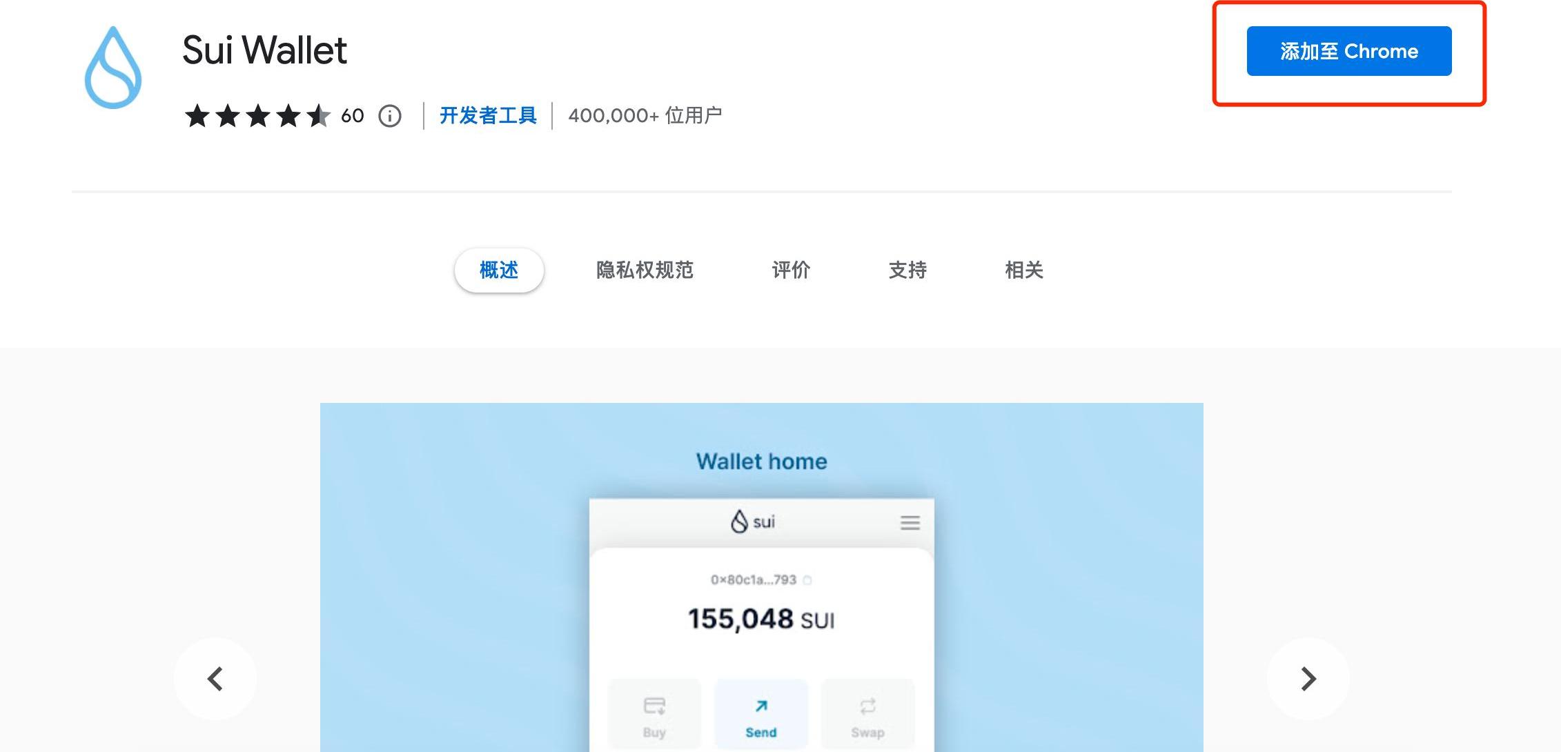 1)首选在Chrome添加SuiWallet插件,点击此处。