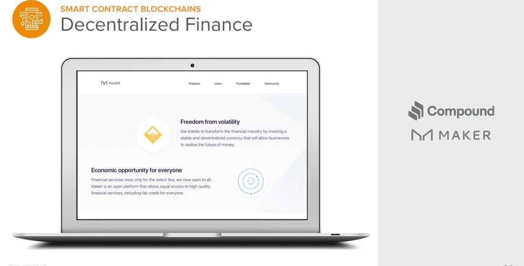 比如,MakerDAO是个借贷平台,也发行与业务相结合的稳定币。它就是一个DAO,由代币持有者拥有的组织,然后他们对系统的重大升级进行投票。