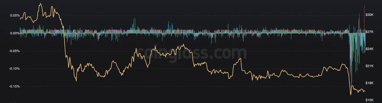 然而,Chris认为,FTX的内爆不是创造新一轮的强制抛售浪潮,而是“压轴戏”,是自UST崩溃以来我们所看到的大规模平仓和去杠杆化的最后一只鞋子。