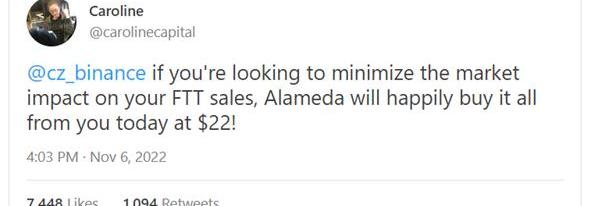 11月6日,事情进一步升级,当时Alameda首席执行官卡罗琳·埃里森在推特上表示,CoinDesk对公司资产负债表的报告并不完整。