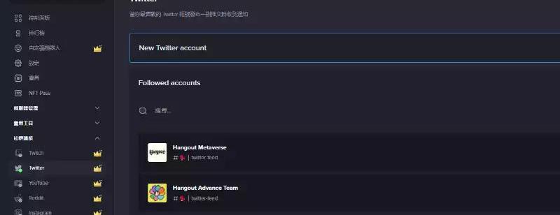 进入https://tweetshift.com/,点击「InvitetoServer」,将机器人邀请到服务器中;还是在同一个网页,点击右上角的「Dashboard」进入调试页面;在调试页面,点击进入你的服务器,然后点击「TwitterFeeds」;现在添加你要同步的推特账号名,希望被推送到的频道,什么类型的推特会被推送,以及展现的样式,点击「start」;