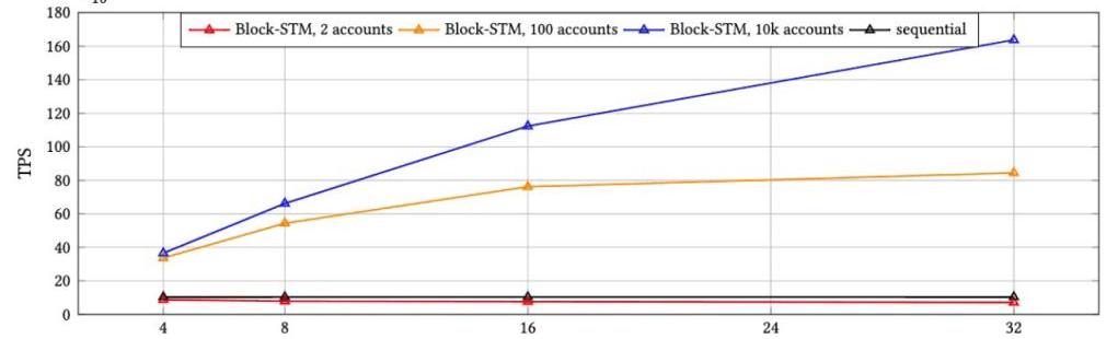 无需单独提交事务:避免单独提交事务的同步成本。Block-STM只是以轻同步的方式懒惰地提交一个块中的所有事务。VM为乐观内存访问提供安全性:交易以Move和Solidity等智能合约语言指定,并在封装其执行并确保安全行为的虚拟机中运行。这很好地分离了抽象,并允许Block-STM在并行推测执行期间避免处理不一致状态的后果。预定义的顺序减少了同步:保证最终结果与按固定、预设顺序顺序执行的事务相匹配,这减少了执行期间所需的同步量。