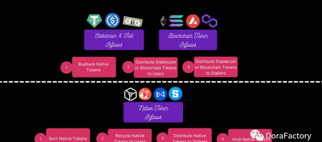 回购可以定期和固定的数字执行——例如使用每月70%的稳定币流入来回购原生代币或不定期执行的回购,以实现更加动态的资金管理。