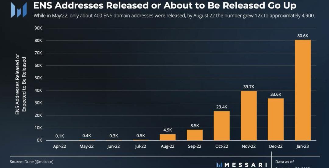 这种增长的一个潜在解释是在未来几个月内释放或预计释放的ENS名称数量大幅增加。