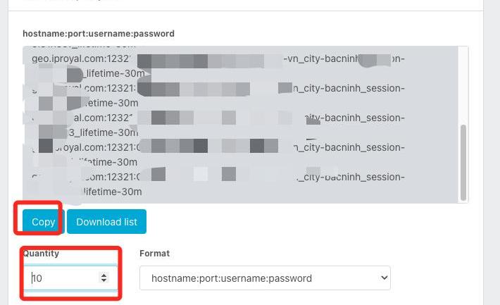 8.设置完之后,根据你想操作的账户的数量,生成hostname:port:username:password,这个的用户,后面说明。比如我想操作10个以太坊撸空投地址。那我就生成10个。