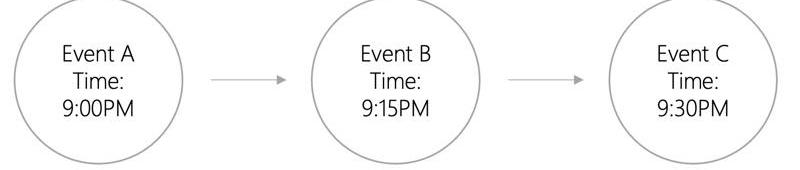 上图是“全序”的一个例子。当确定了哪个事件先发生之后,所有事件都将有确切的顺序。在一组全序的事件中,我们会确切地知道每个事件在全序中的位置。如图使用全序时,事件?A?首先出现,然后是事件?B,再然后是事件?C。这就是事件在区块链中的记录方式。