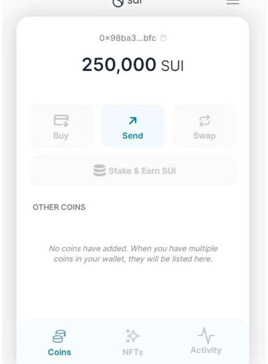 现在检查你的Sui钱包,几分钟后你将收到25万Sui。