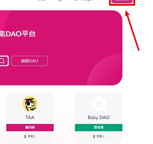 DAO创立完成后,点击网页上方的,然后在栏位中可以看到你创建过的所有DAO。