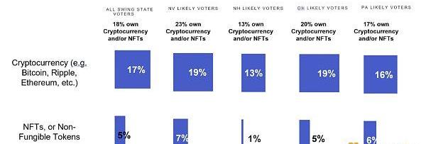 民意调查还发现,近五分之一的选民拥有数字资产。从这个数字来看,现在每个摇摆州拥有数字资产的人数远远多于工会会员。