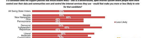 55%的受访选民不太可能投票给反对启用Web3政策的候选人。