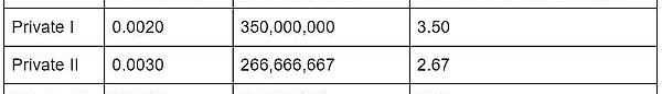 私人融资轮分配给私人投资者。共有三个私人回合,详细记录如下。