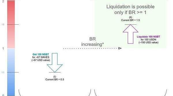 用户可以将1美元的WAVES代币锁定在智能合约中,铸造1USDN,也可以将1USDN赎回为1美元的WAVES。随着时间的推移,锁定在智能合约中的WAVES的价值可能和发行的USDN不再相等,这时就需要通过拍卖来调整储备金的价值,可能会增发原生代币NSBT。