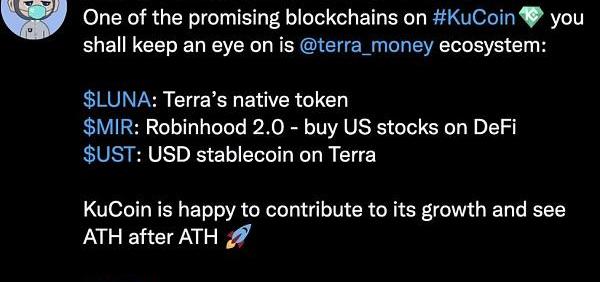 LUNA&UST崩盘前,KuCoin为用户提供买卖UST的渠道,因为KuCoin连接到Luna区块链,因此在KuCoin上购买UST的用户可以将其直接发送到Luna生态系统Anchorrprotocol或其他的Dapp中使用。