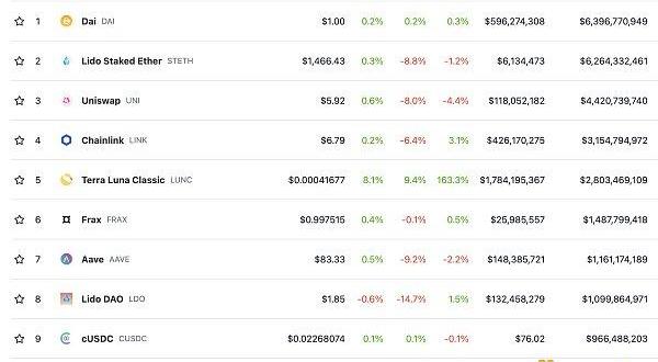 DeFi项目锁定资产前十排名及锁仓量数据来源:defillama